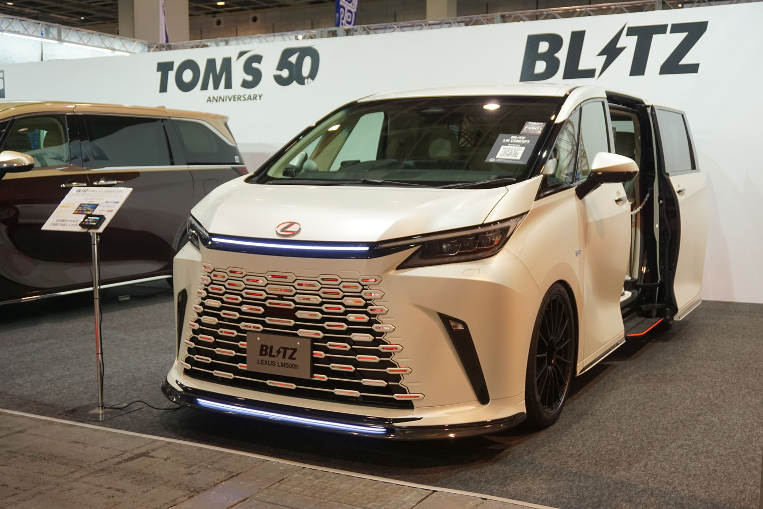 The vehicle is priced at a whopping 20 million yen (including consumption tax). The Lexus LM, which had already been launched overseas as an executive minivan and boasted overwhelming popularity as a show car, was introduced in Japan as a new LM to coincide with the full model change of the base Alphard/Vellfire. The annual sales volume for Japan is 7,000 units, and delivery is currently rumored to be four to eight months. Three Lexus LMs, which are rarely seen on the streets, were on display at the NAPAC (Nippon Auto Parts Aftermarket Committee) booth at the Osaka Auto Messe, with HKS, BLITZ, and TOM’S displaying their unique customizations based on their concepts, attracting the attention of visitors.