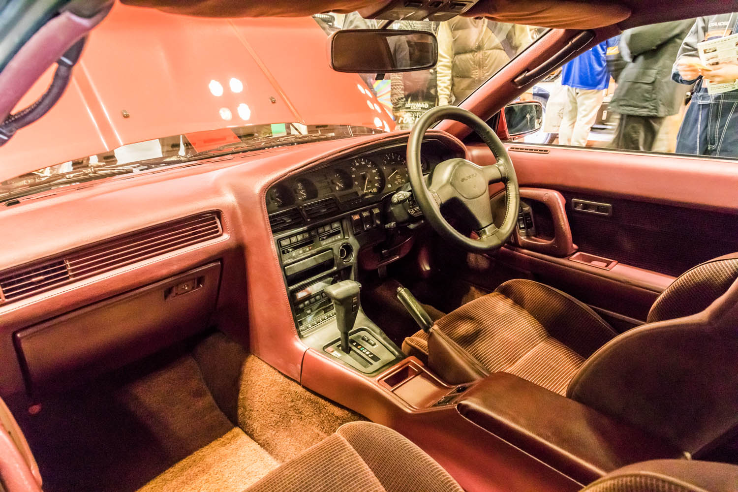 We opened the door and were shown inside. Those who knew the car back then will know that this wine interior faded quickly in the sunlight, with the seat shoulders and other parts turning white. This Supra’s seats were no exception and were badly faded, but the original colour has been reproduced by re-dyeing the fabric itself using ‘Somay-Q’.