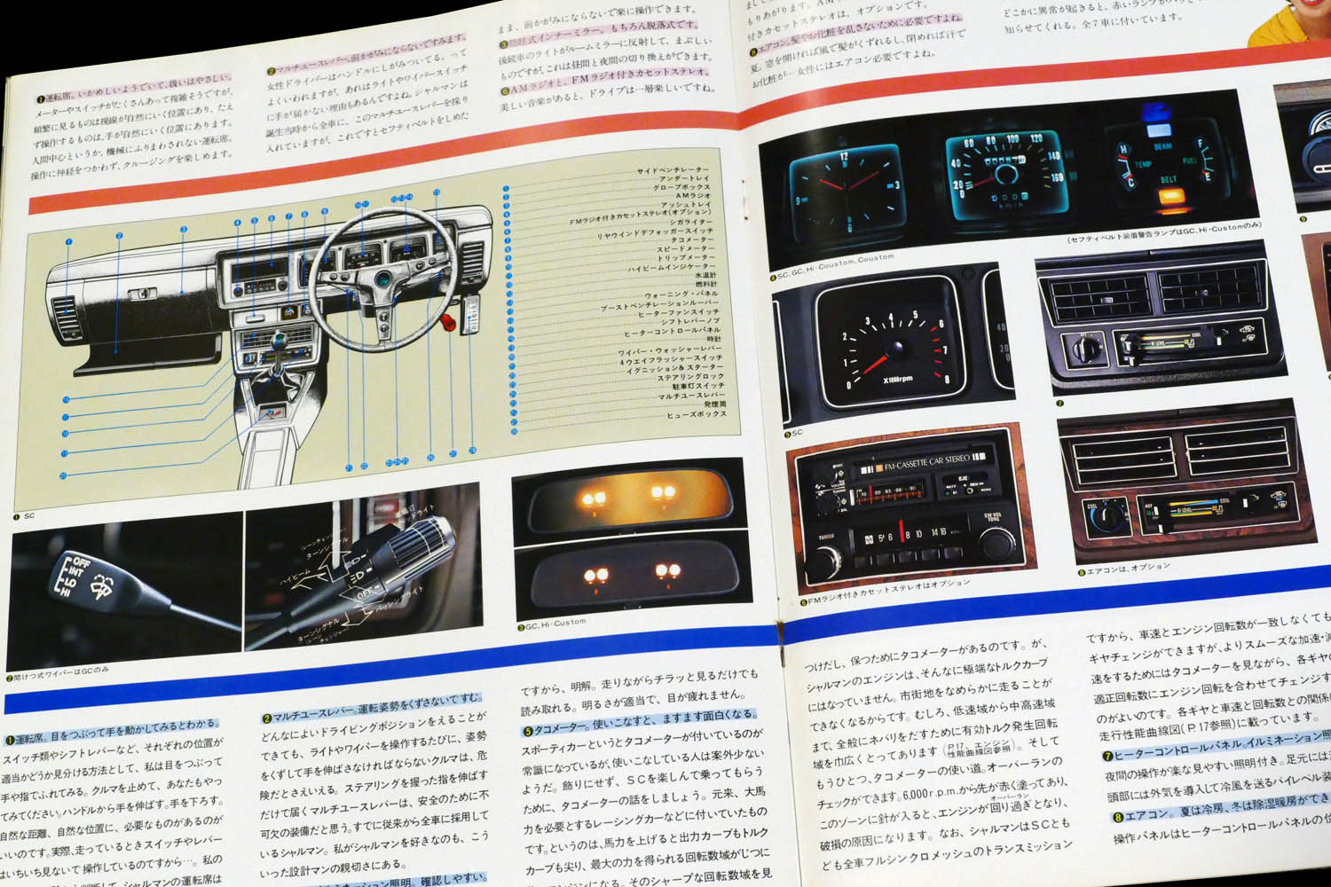 Also nostalgic was the cassette stereo with FM radio, but even more nostalgic was the AM radio, which was preset by pressing a button for the station to be broadcast (the button could be pressed after causing it to be pressed). The instrument panel was designed with a row of square meters, and depending on the grade, there was a speedometer and an analog clock of the same size, which was also typical of the instrument panels of the 1970s.