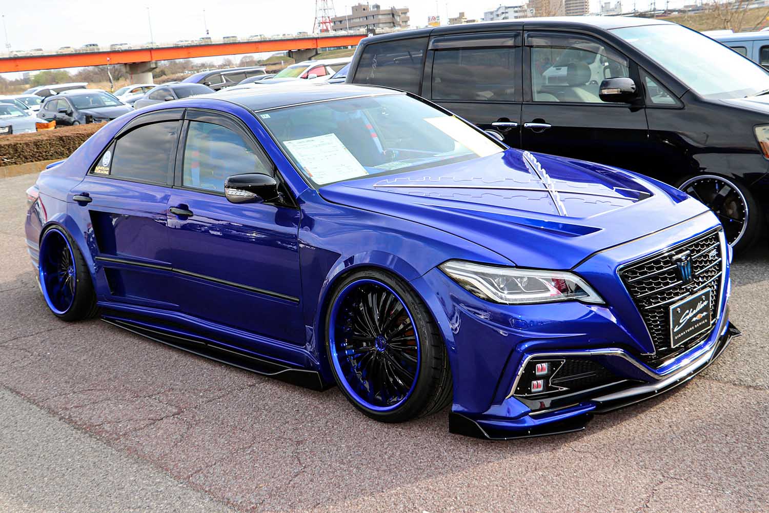 At a dress-up car contest held in Tochigi Prefecture, we spotted a blue ‘Crown’ with an edgy custom! It looks like a 22 Crown, but in fact, its base is an 18 Zero Crown, so it is truly an edgy custom vehicle. Let’s take a look at its curious specifications.