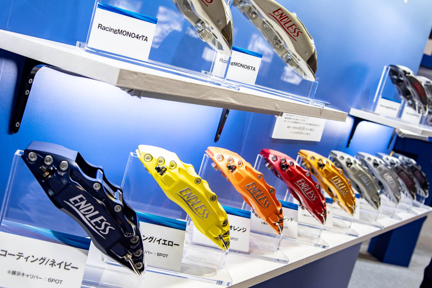 First up is the new type of Racing MONO6 calipers that were installed on the demo car, the Nissan R35 GT-R. Named the “Racing MONO6EVO 2024,” these calipers were the largest in the history of Endless caliper kits.