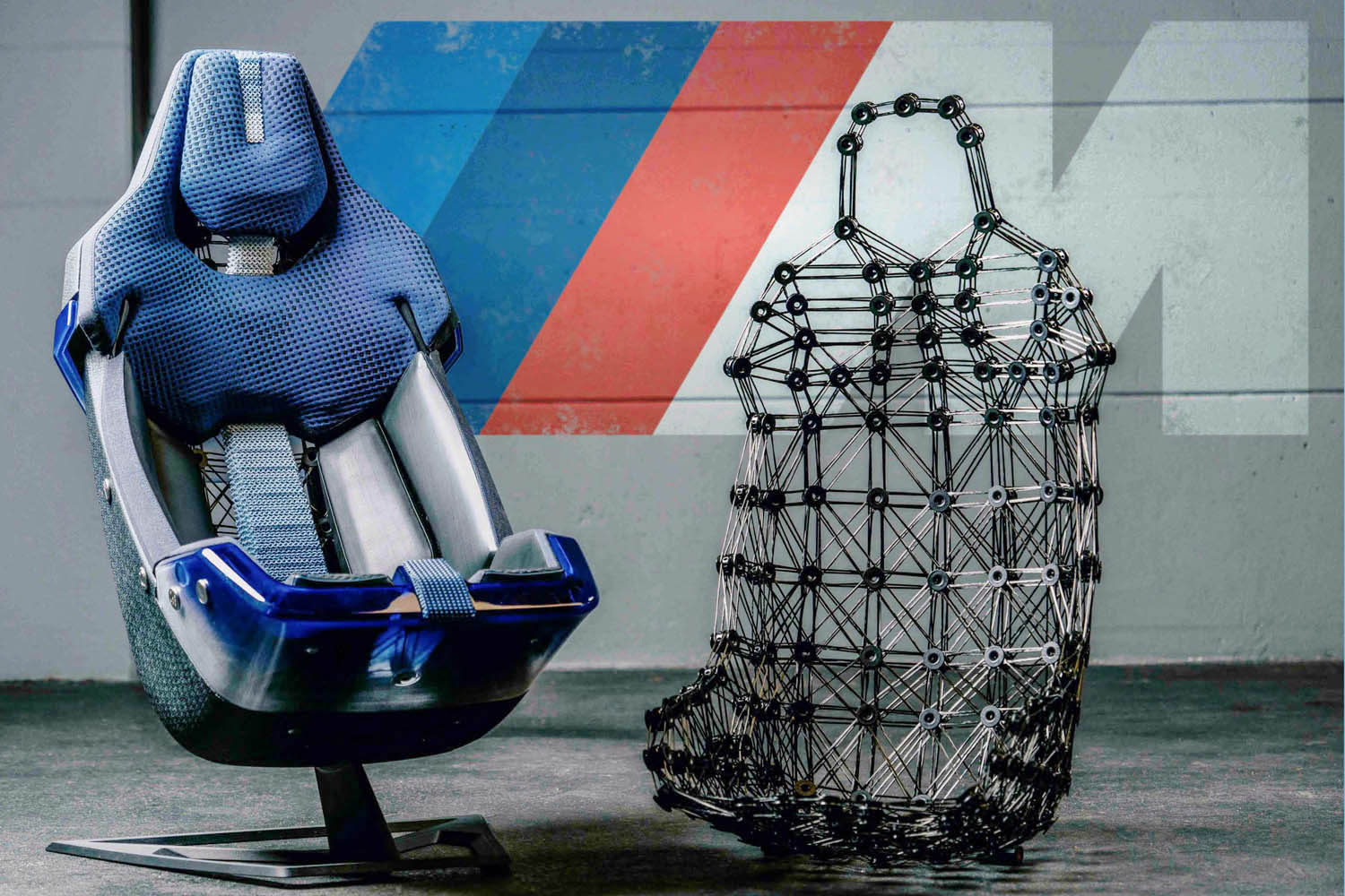 The BMW M Visionary Material Sheet focuses on circular design principles and sustainable materials. The seat features a mono-material lightweight design with an emphasis on the use of sustainable and renewable materials such as recycled polyester fibers, flax fiber biocomposites and alternative biogenic leathers.