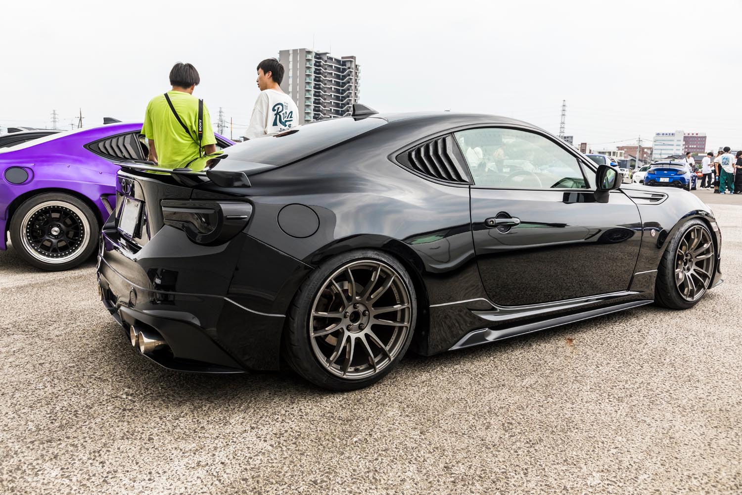 Never fitted with fancy aero, the all-black Toyota “86” was spotted in the ladies’ owner area at the Gunma SONIC held at G-Messe Gunma on July 6, 2024. We hit the 86 owner with a calm black body, gun metallic wheels, and smoked rear tail with all emblems blacked out.