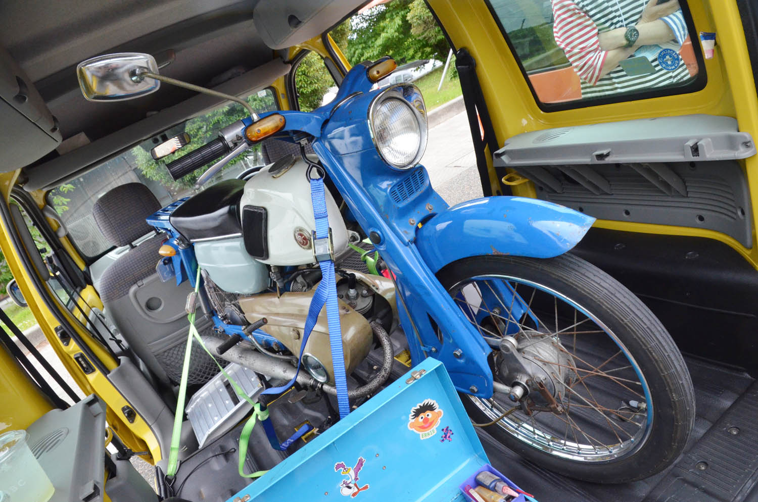 “Oh, this bike is a Bridgestone Champion Deluxe. It is a moped with 52cc displacement. I enjoy both motorcycles and four-wheeled vehicles, and I often tinker with them myself.